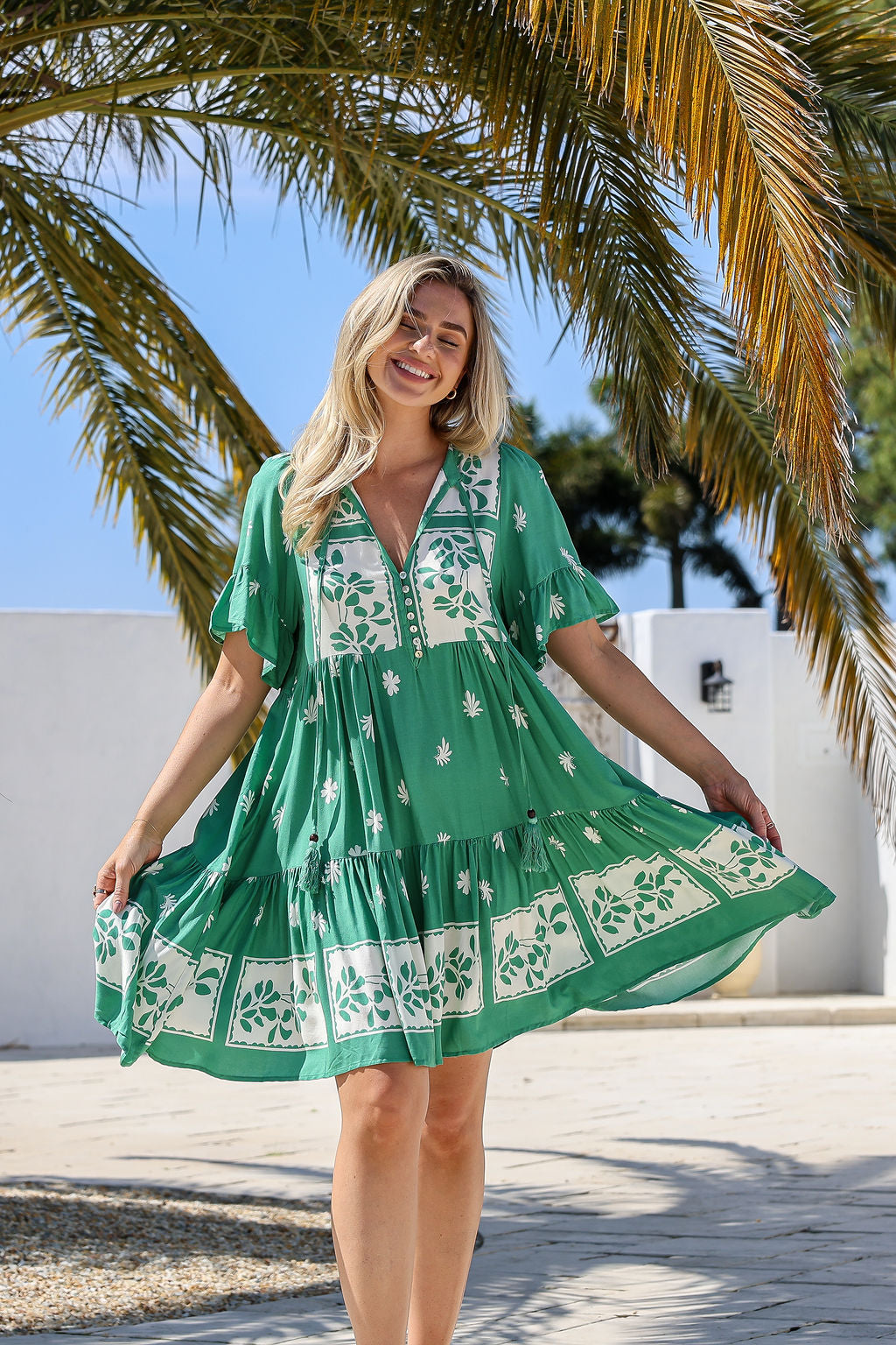 Sunny Print Short Dress - Green